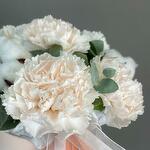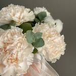 Ribbon - 3 шт. Eucalyptus - 3 шт. Hatbox - 1 шт. Cotton - 4 шт. carnation - 6 шт.