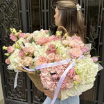 Гортензія - 9 шт. Кущова троянда - 4 шт. Еустома - 6 шт. Піоновидна троянда - 4 шт. тюлтпаны - 8 шт.