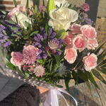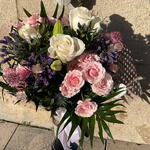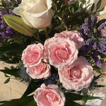 Романтичний букет у пастельно-рожевих і блакитних тонах. Ідеально для святкування Дня матері.