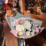 Ці класичні букети створені з ретельно підібраними натуральними елементами. Кожен букет складається з одного шматка крафт-паперу Lux та одного шматка білого паперу для чищення, що створює елегантну та шикарну презентацію. Квіти, ретельно підібрані для формування ніжного та гармонійного дизайну, складаються з чотирьох міні-троянд та чотирьох білих ромашок, що створюють нотку свіжості та чистоти. До них додано дві хризантеми з однією квіткою, що підкреслюють відчуття елегантності та вишуканості. Набір доповнено двома мастиковими деревами або подібними, що надають букету сільського та вишуканого вигляду. Ідеальний подарунок, щоб освідчитися в коханні або просто висловити свою вдячність комусь особливому.