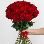 Букет із 25 червоних троянд з довгими стеблами