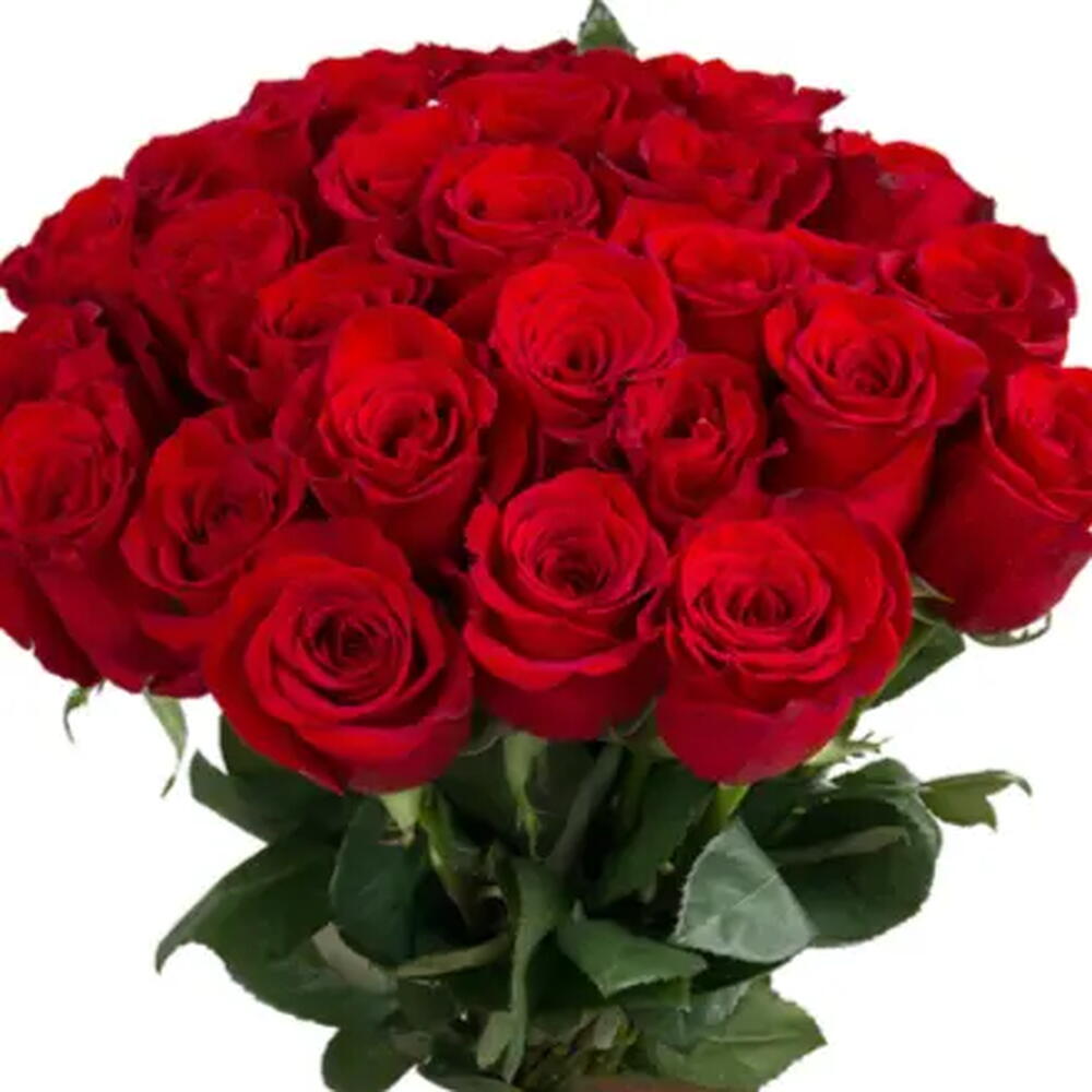 Букет із 25 червоних троянд з довгими стеблами