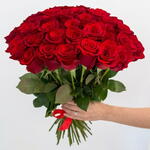 Букет із 51 червоних троянд з довгими стеблами