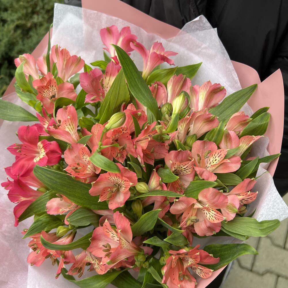 Представляємо елегантний букет з одинадцяти ніжних альстромерій. Ідеальний вибір для поціновувачів елегантності та стриманої краси. Створіть святкову атмосферу або просто потіште близьку людину цим вишуканим подарунком. Цей букет альстромерій — симфонія ніжності та гармонії в кожній квітці.
