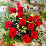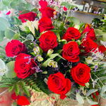 Букет з червоних троянд, іноді квіткові букети можуть прибути в пункт призначення з квітами іншого кольору або сорту, ніж на фотографії, в залежності від наявності.