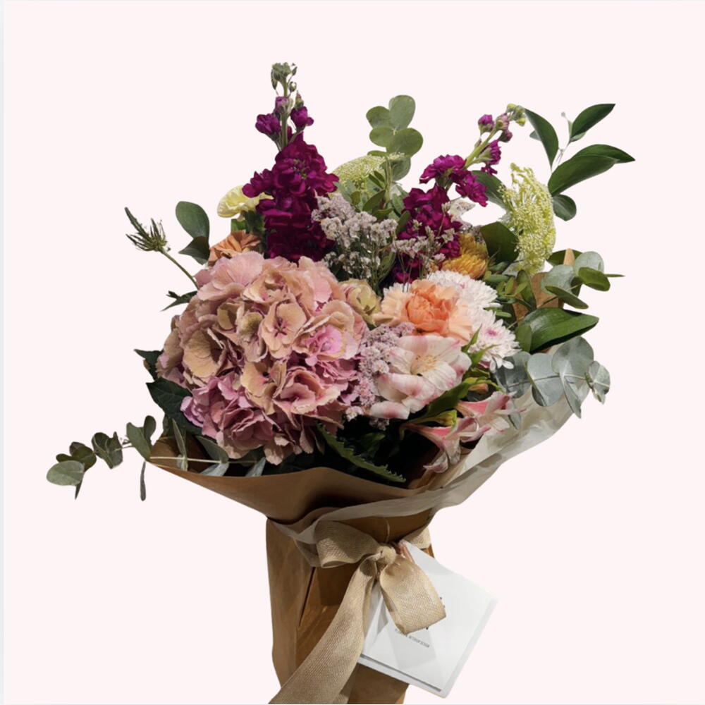 Букет, що огортає ніжністю та романтикою 🌸 Рожеві гортензії, сезонні квіти та натуральна зелень поєднуються у витонченій композиції, натхненній спокійними садами та особливими моментами. Ідеально підходить для подарунка емоцій, краси та жесту, який запам'ятається ✨