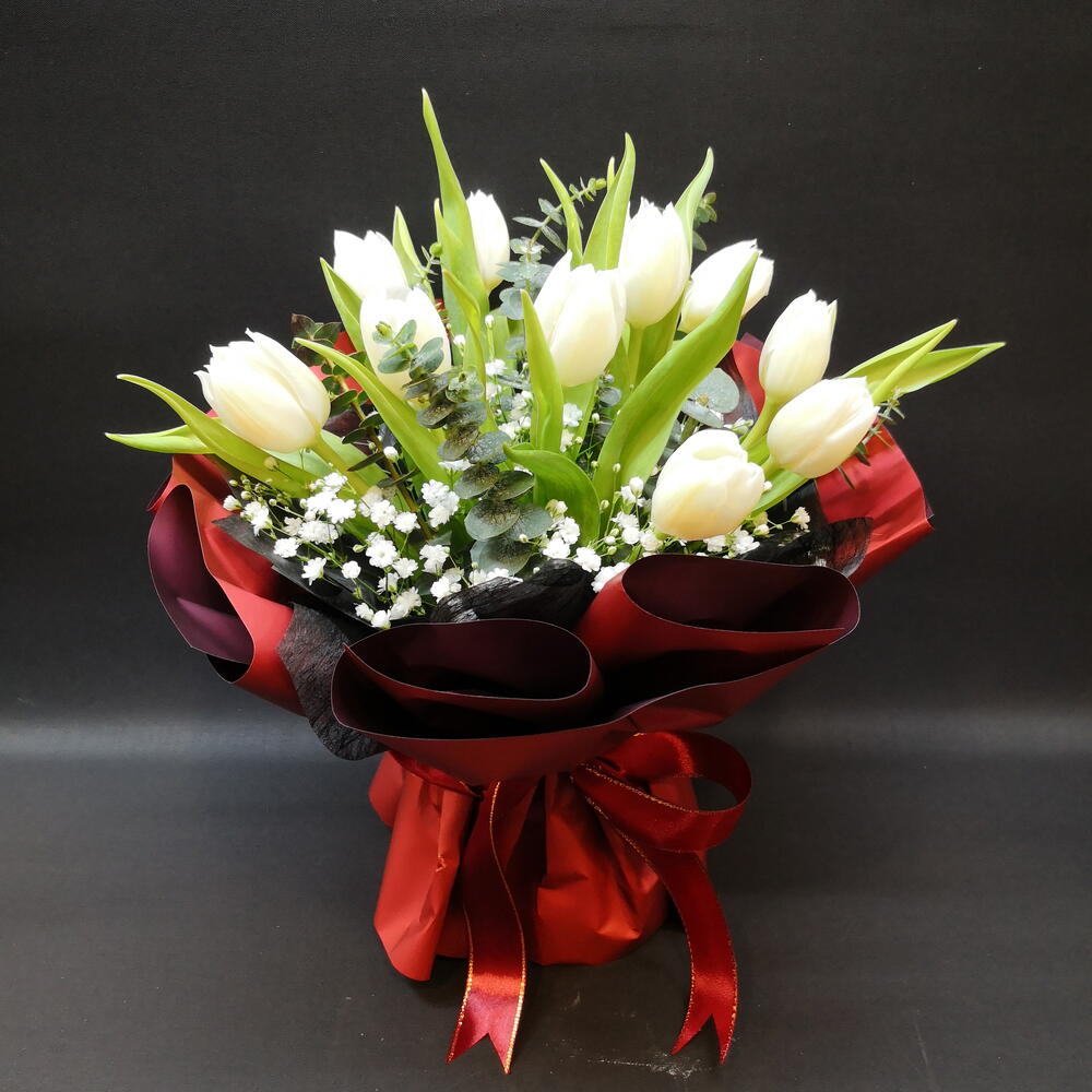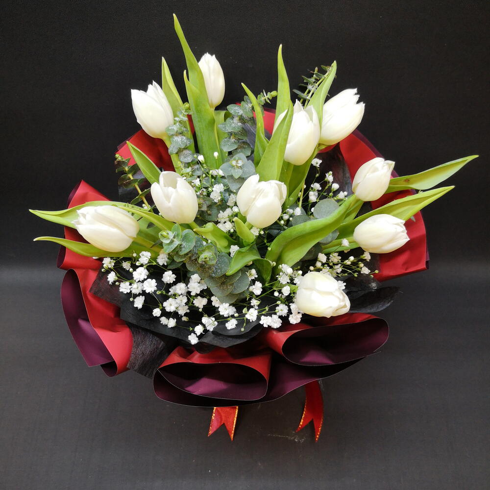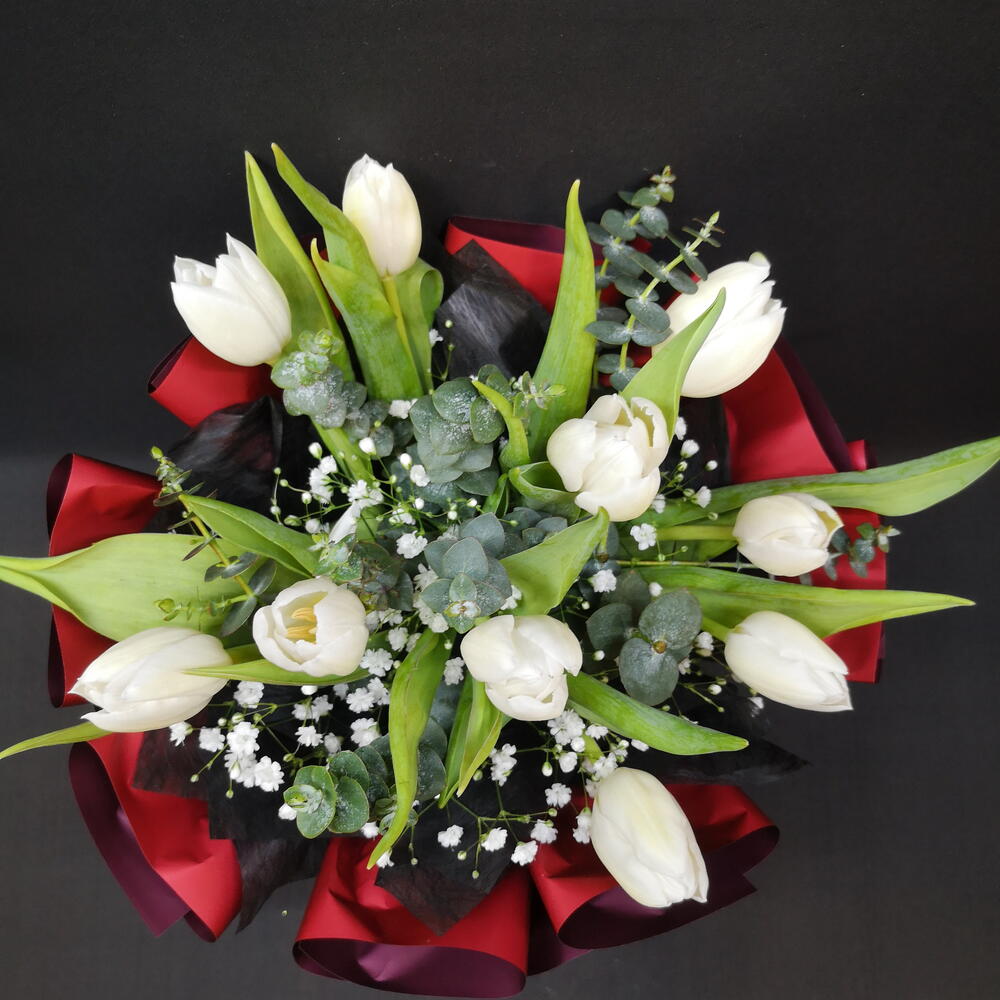 paniculata - 1 шт. евкаліпт - 8 шт. papeles - 3 шт. пиріг з водою - 1 шт. tulipanes blnco - 10 шт.
