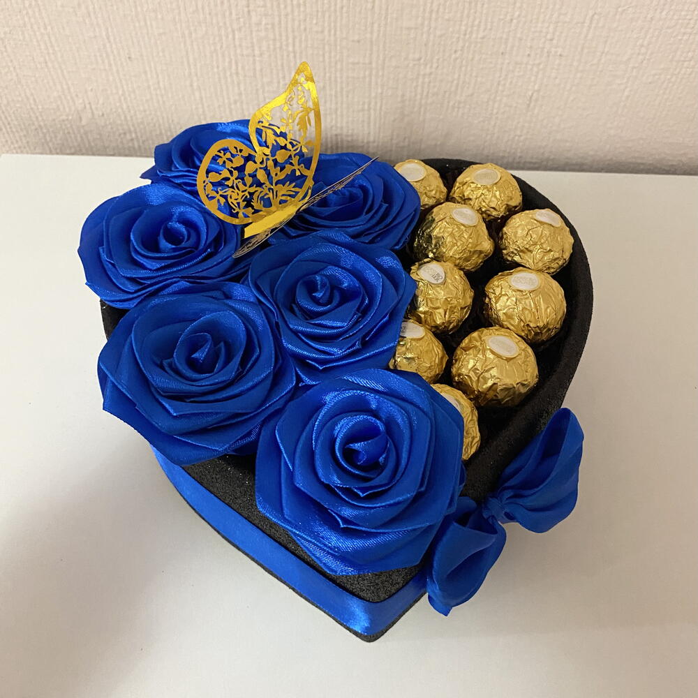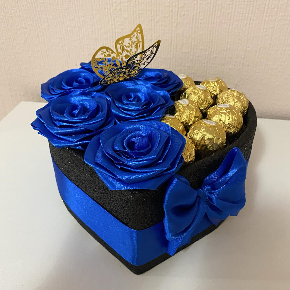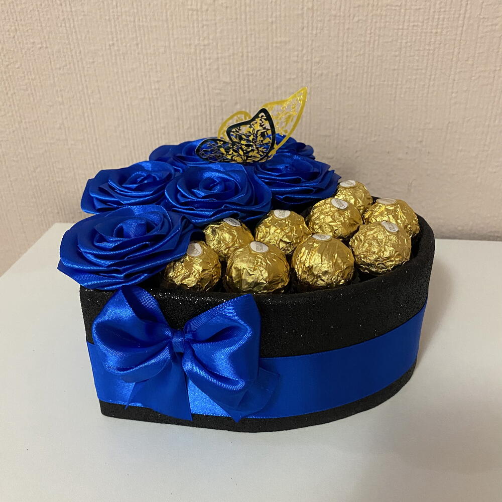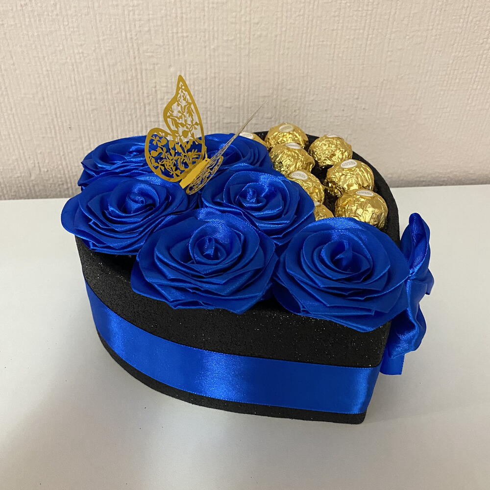 Ідеальний подарунок для чоловіків – коробка-серце з блакитними трояндами та Ferrero Rocher