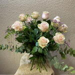 Цей чудовий класичний букет містить 12 свіжих троянд, що додають йому позачасового та романтичного відтінку. Його доповнюють 3 гілочки рожевого лімонію, які надають ніжного відчуття свіжості та краси. Крім того, він містить 4 гілочки евкаліпта, які забезпечують унікальний ніжний аромат. Нарешті, 3 гілочки різноманітної зелені додають нотку яскравості та ніжної свіжості. Цей букет – ідеальне поєднання елегантності та яскравості, що робить його ідеальним вибором для будь-якої події.