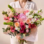 Eucalyptus - 5 шт. Limonium - 5 шт. Lisianthus - 7 шт. Peony - 5 шт. rose - 5 шт. carnation - 5 шт.
