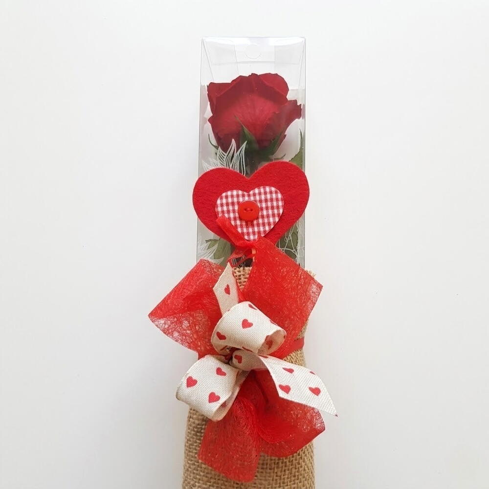Una elegante rosa roja preservada presentada en un estuche transparente decorativo, perfecta para expresar amor eterno y sentimientos especiales. La rosa natural preservada mantiene su belleza, textura y color durante mucho más tiempo sin necesidad de agua ni cuidados especiales. El diseño se complementa con un bonito lazo decorativo en tonos rojos y beige con pequeños corazones, que añade un toque romántico y delicado. El estuche transparente protege la flor y permite apreciar cada detalle de este regalo único. Es un detalle ideal para San Valentín, aniversarios, cumpleaños, declaraciones de amor o como recuerdo duradero para una persona especial. Para conservar la rosa preservada en perfecto estado, se recomienda mantenerla en un lugar seco con luz indirecta, evitando la humedad, el sol directo y las fuentes de calor. No requiere riego ni agua, y es aconsejable evitar tocar los pétalos con frecuencia para mantener su forma y textura durante más tiempo.