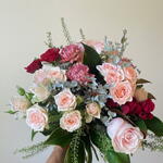 Цей ніжний букет поєднує м'які романтичні тони з глибокими виразними акцентами, створюючи елегантну та збалансовану композицію. Троянди рожевих відтінків додають солодкості та ніжності, тоді як бордові троянди вносять нотку пристрасті та вишуканості. Легкі форми евкаліпта та свіжого листя огортають аранжування, надаючи йому об'єму та відчуття природності. Це ідеальний букет для дня народження, річниць, зізнань у коханні або просто щоб здивувати когось особливого жестом, сповненим чарівності. Щоб зберегти букет свіжим довше, помістіть квіти у вазу з чистою водою, зрізайте стебла по діагоналі кожні два дні та уникайте прямого сонячного світла або джерел тепла. Регулярно міняйте воду і тримайте листя поза водою, щоб продовжити його красу.