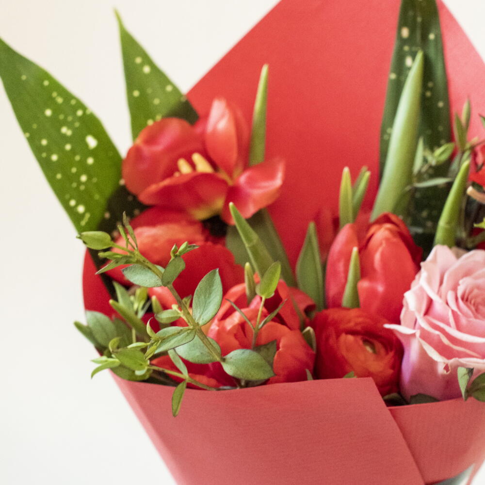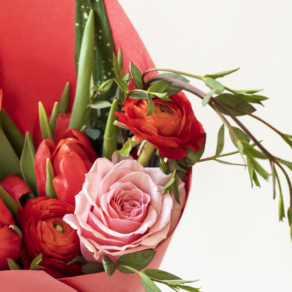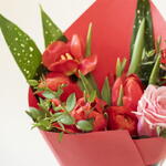 tulipanes - 5 шт. verdes - 3 шт. роза рожева - 1 шт. лютики - 3 шт. міні гвоздики рожеві - 3 шт.