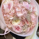 Spray rose - 2 шт. Hydrangea - 5 шт. rosa - 6 шт. ranúnculo - 4 шт. квітка рису - 5 шт.