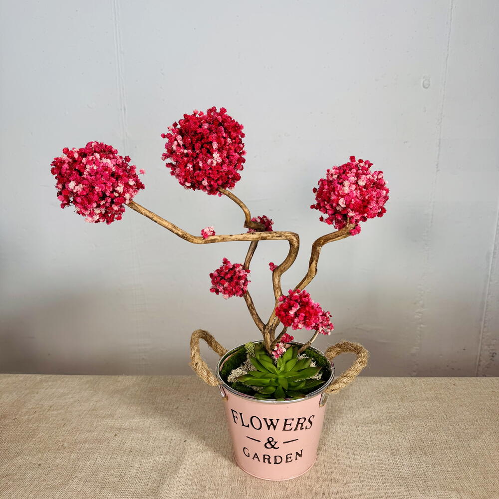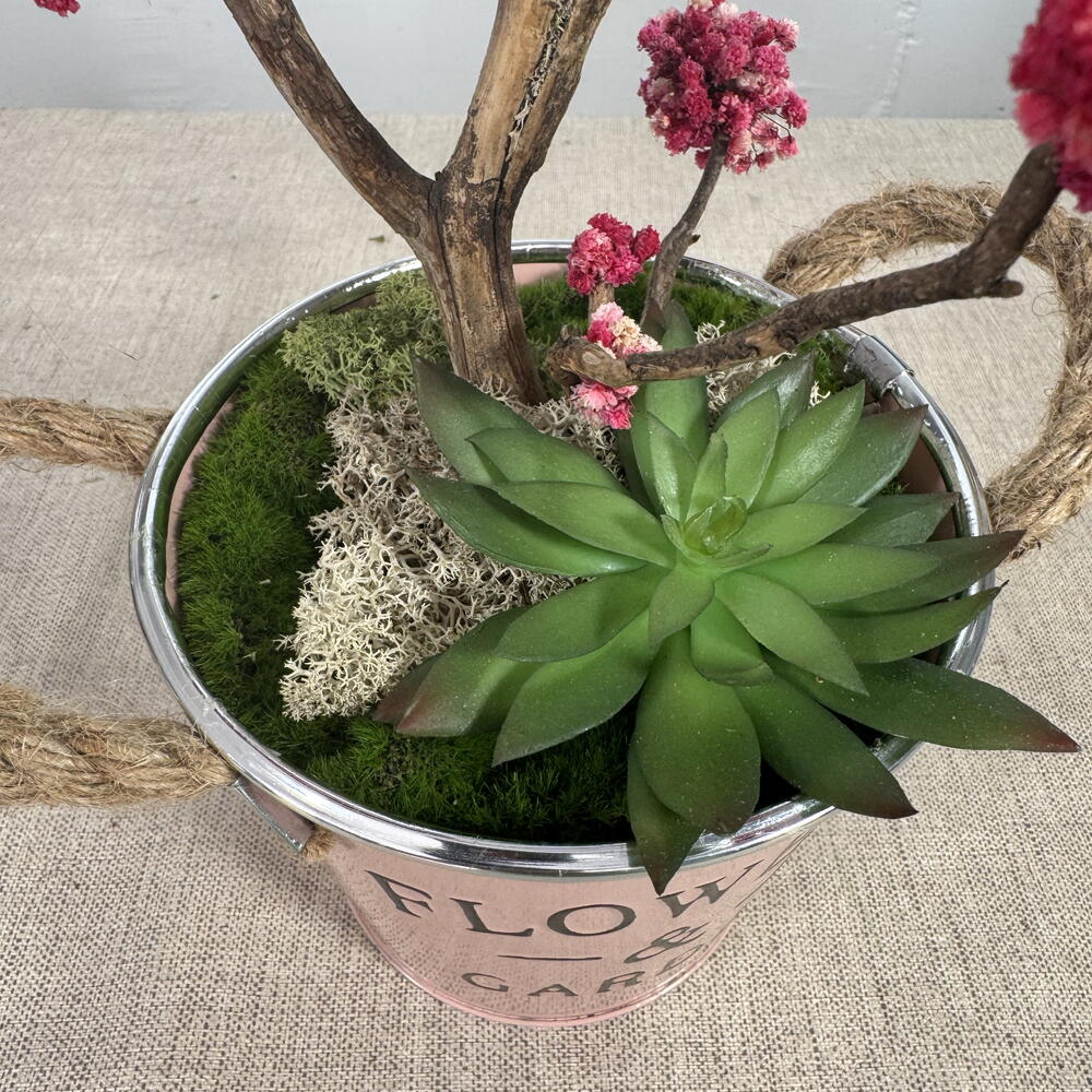 Branch - 1 шт. металевий кошик - 1 шт. штучний мох - 1 шт. сушена гіпсофіла - 20 шт. штучна сукулента - 1 шт.