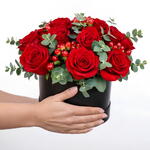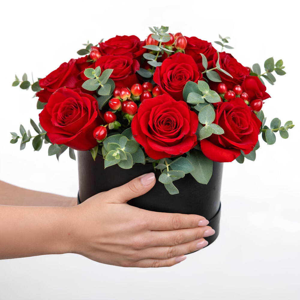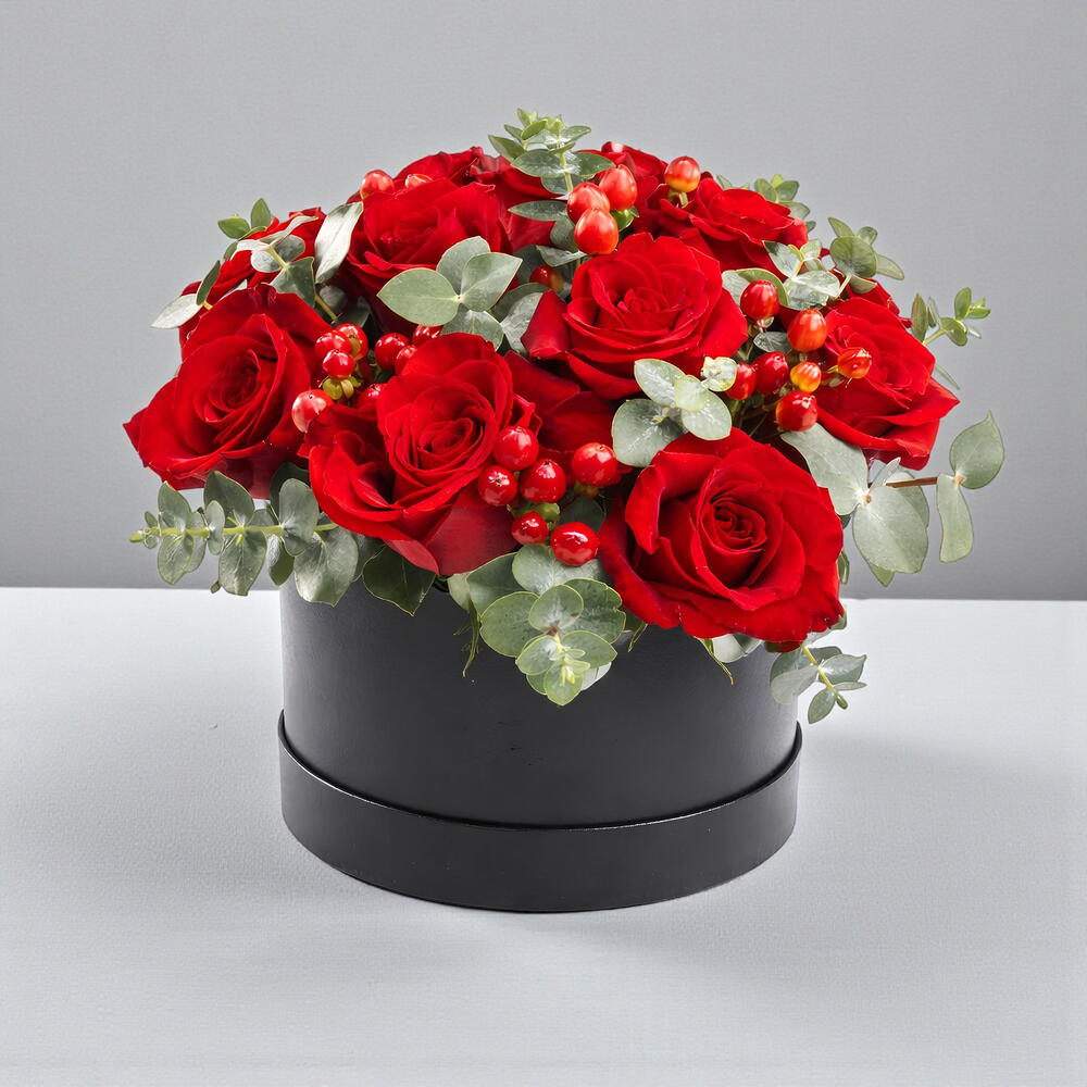 Поєднує високоякісні червоні троянди з ретельно відібраною зеленню, усе розміщено в чорній матовій шляпній коробці, що підносить композицію до рівня преміального подарунка. Вишуканий, вражаючий і надзвичайно елегантний. Це ідеальний подарунок для тих, хто цінує деталі, дизайн і задум за кожним вибором. Жодних непотрібних обгорток або зайвих прикрас: лише ефектні квіти, ідеально збалансовані й готові стати головним акцентом. Ідеально для Дня святого Валентина, важливих річниць або коли хочеш ясно показати, що ця людина важлива для тебе.