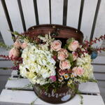 Veronica - 5 шт. oasis floral - 3 шт. astilbe - 5 шт. phalaris - 4 шт. verdes variados - 4 шт. rosas spray - 5 шт. білі гортензії - 2 шт. шляпна коробка - 1 шт.