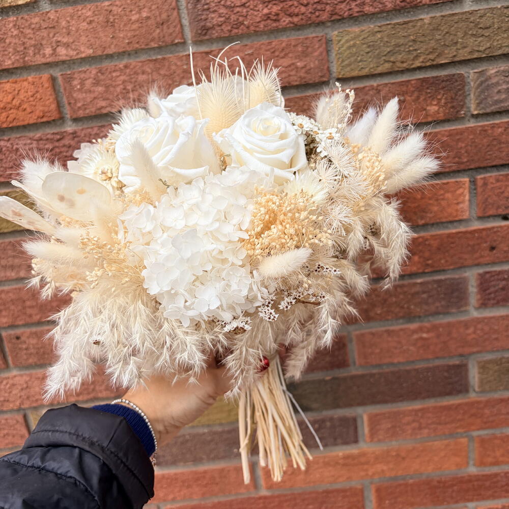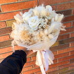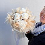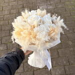 lagurus - 5 шт. preserved rose - 3 шт. лунарія - 2 шт. pampas grass - 10 шт. гліксія - 1 шт. стіпа - 5 шт. стабілізована мітла - 5 шт. стабілізована гортензія - 3 шт. синеголовник - 3 шт.