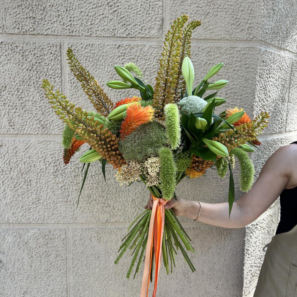 деревій - 5 шт. ami - 7 шт. еремурус - 5 шт. setaria - 10 шт. білі лілії - 7 шт.