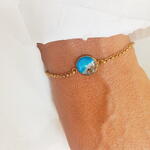 Гарний браслет, який подарує вам силу та спокій моря. Одна сторона має ручну роботу з використанням смоли та середземноморського піску. Інша сторона виготовлена з позолоченої нержавіючої сталі, на якій можна вигравірувати імена та ініціали. Гарний, унікальний та особливий подарунок... Візьміть із собою частинку моря! І персоналізований іменами чи чим завгодно!