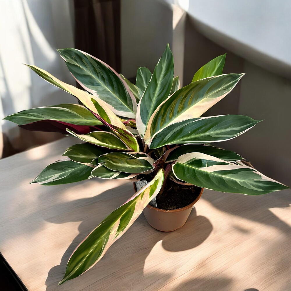 Вражаюча Stromanthe Triostar — це кімнатна рослина, яка зачаровує своїм яскравим і барвистим листям. Її відтінки зеленого, рожевого та білого гармонійно поєднуються, надаючи будь-якому простору тропічного та вишуканого вигляду. Ідеальна для поціновувачів сучасного декору, ця рослина не лише прикрашає дім, але й очищує повітря та створює заспокійливу атмосферу. Підійде для розміщення в офісах, віталях або світлих куточках із розсіяним світлом.