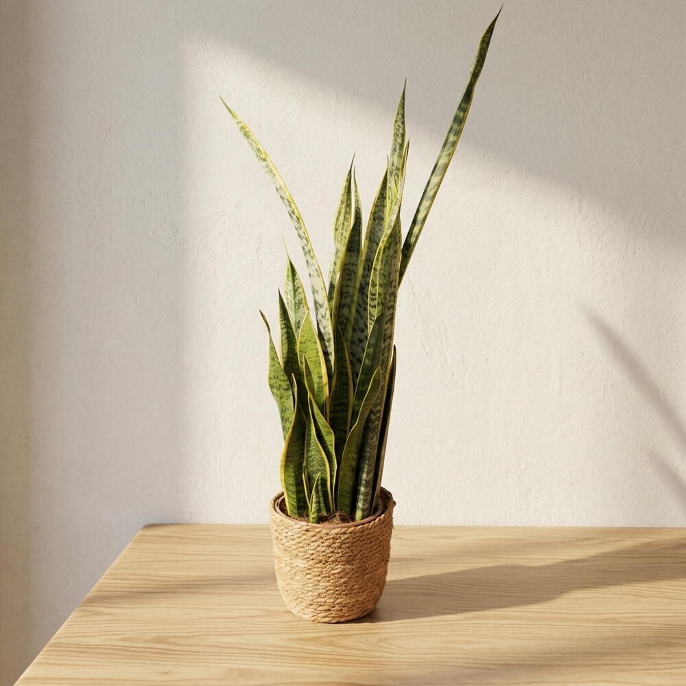 Esta elegante Sansevieria destaca por sus hojas verticales y estilizadas, que aportan un aire moderno y sofisticado a cualquier espacio. Su diseño natural y minimalista la convierte en una pieza decorativa ideal para interiores contemporáneos. Los tonos verdes con matices jaspeados crean un efecto visual atractivo y armonioso. Es una planta resistente que simboliza fortaleza, equilibrio y renovación. Perfecta para hogares y oficinas, donde añade frescura sin requerir grandes cuidados. Su presencia transmite calma y orden en el ambiente. Una opción práctica y estética que combina durabilidad con belleza natural.