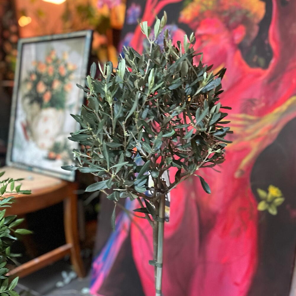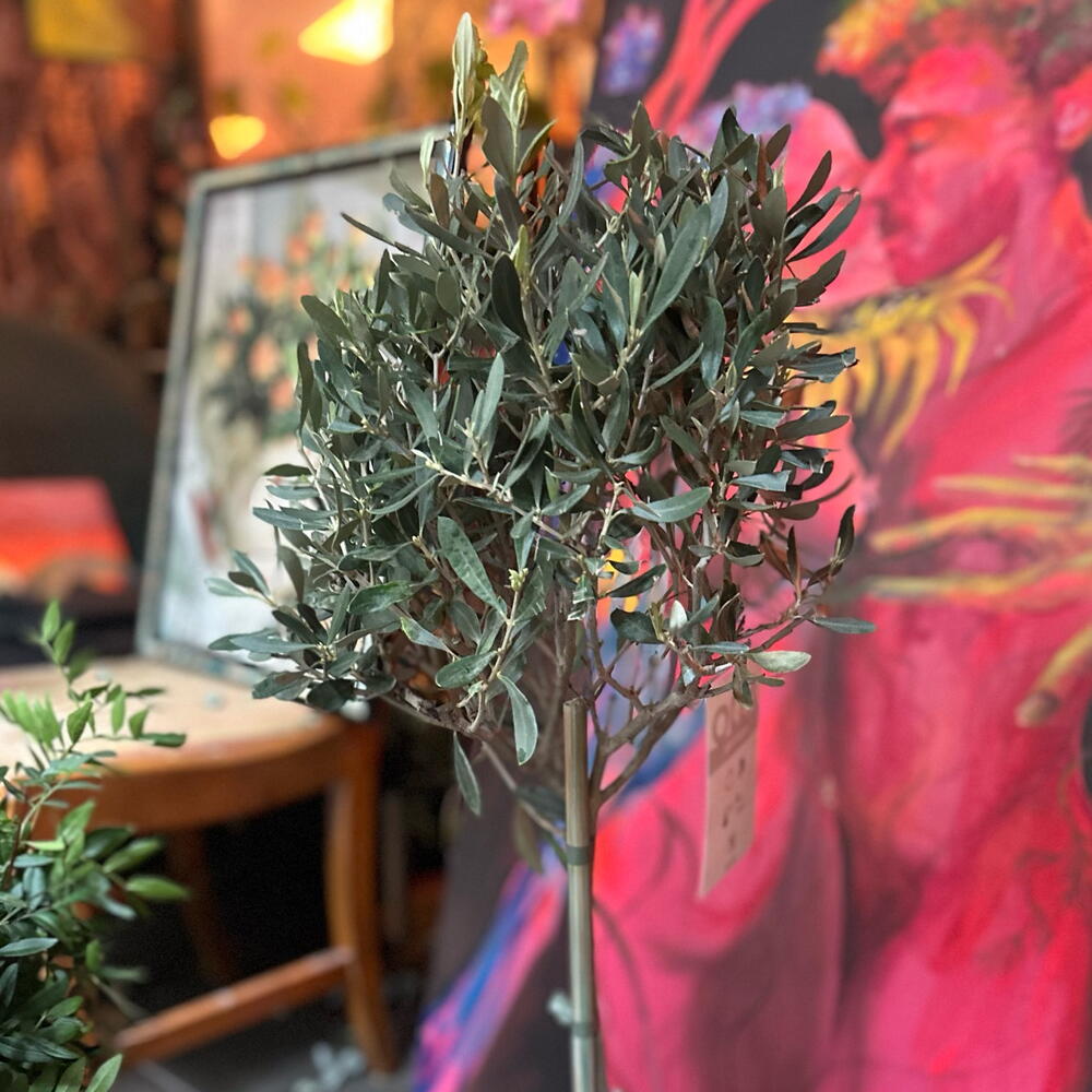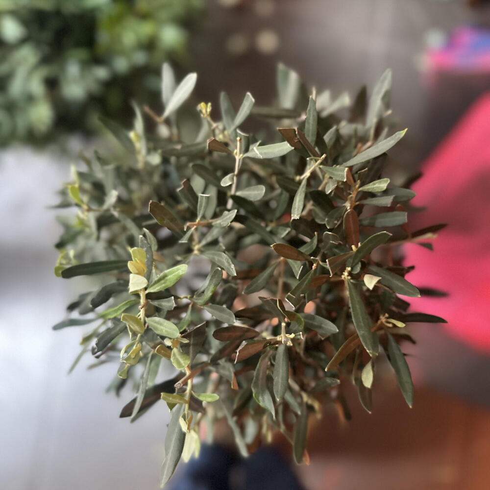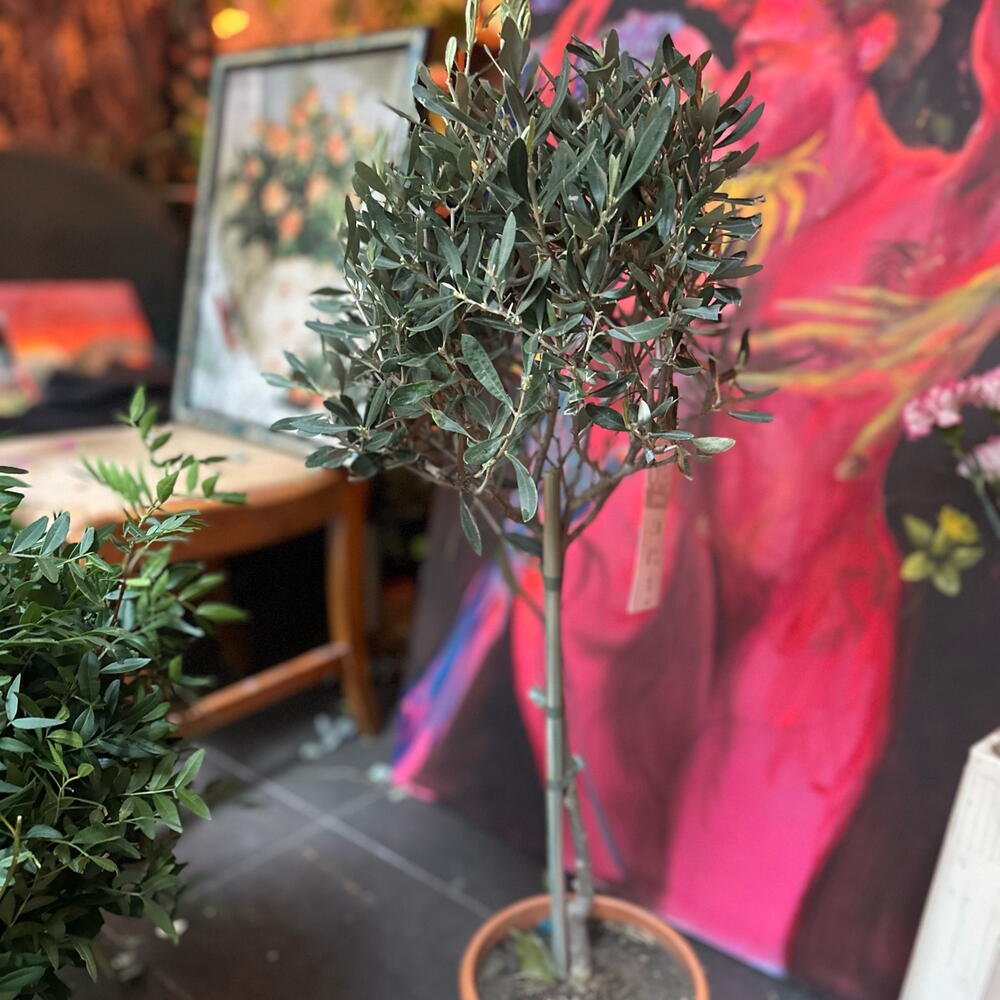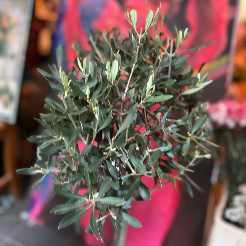 Olivero joven real con forma redonda , una planta noble , fácil de cuidar y comestible . Exterior idealmente