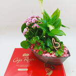 Цей вишуканий подарунковий набір — ідеальне поєднання краси та солодощі. Він містить гарне каланхое та елегантний спатифілум, які додадуть нотку природи й свіжості будь-якому простору. Розміщені на високоякісній металевій підставці, ці рослини є ідеальним доповненням до будь-якого інтер'єру. Крім того, у комплект входить 21 смачна цукерка Nestle, що робить цей набір ідеальним подарунком для тих, хто цінує як візуальні, так і смакові насолоди. Деталь, створена, щоб зворушити та потішити ваших близьких.
