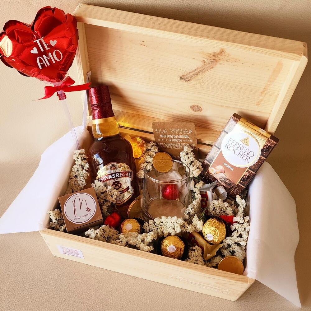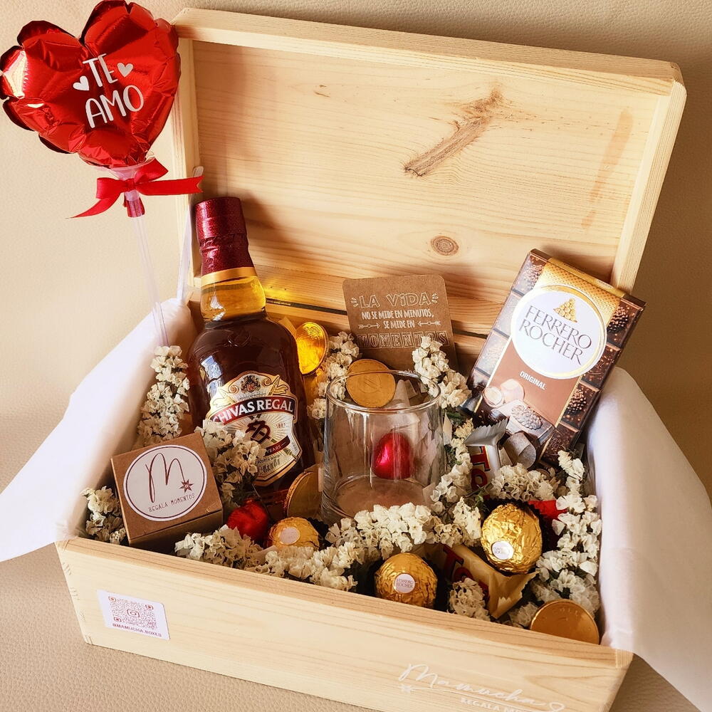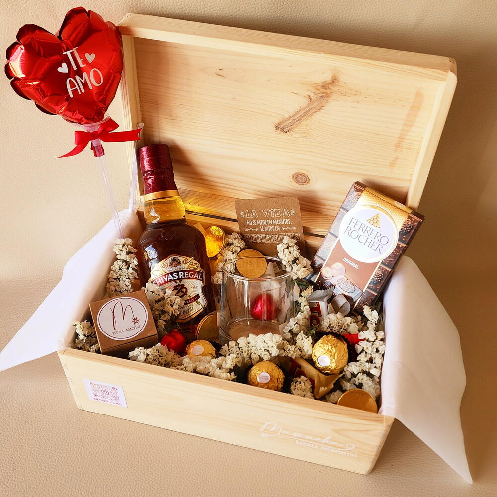Коробка Chivas Whiskey Deluxe – це преміальний подарунок на День святого Валентина, ідеальний для того, щоб здивувати свою половинку елегантним та продуманим жестом. Розроблена для тих, хто цінує маленькі життєві радощі та спільні моменти, ця персоналізована коробка запрошує вас святкувати кохання у неквапливому темпі. Упакована в елегантну дерев'яну коробку, вона містить невелику пляшку віскі Chivas, келих для віскі, плитку шоколаду Ferrero Rocher, шоколадні цукерки Ferrero Rocher, шоколадні цукерки у формі серця, шоколадні монети, міні-батончики Toblerone, повітряну кульку «Я тебе кохаю» та невелику коробку зі спеціальним сюрпризом. Романтичний та вишуканий подарунок, щоб разом підняти келих на День святого Валентина та створити незабутні спогади.