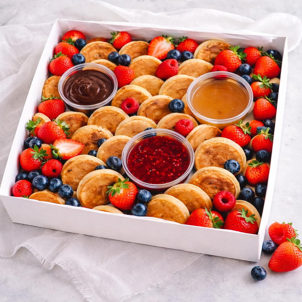 фрезас - 50 гр. млинці з лісовими ягодами - 20 шт. чорниці - 100 гр. полуничне варення - 100 гр. рідкий шоколад - 100 мл caramelo - 100 мл